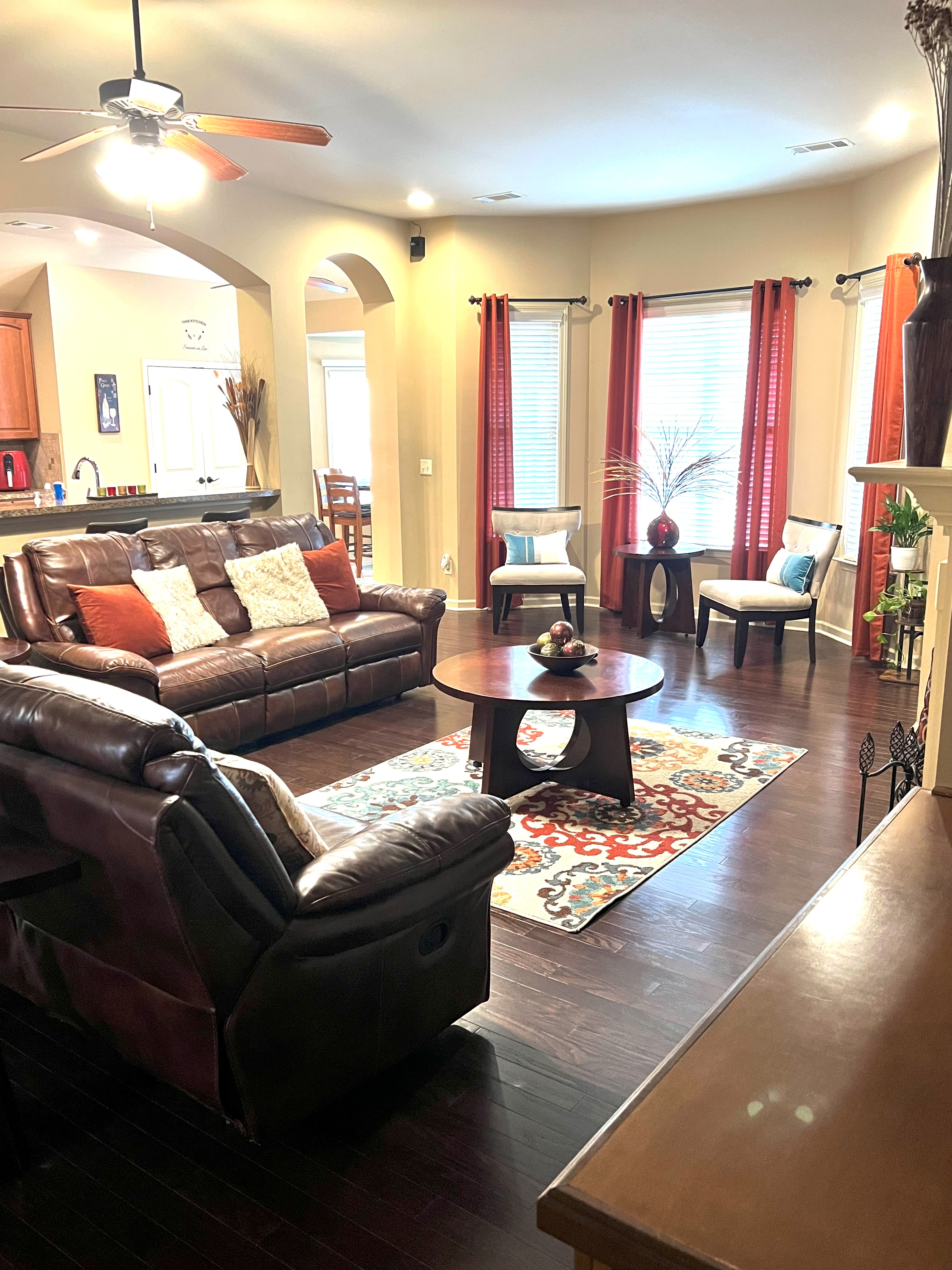 Electric Stove, Refrigerator, Dishwasher, Microwave, Washer/Dryer Connection(Electric), Fireplace(Gas), Ceiling Fans, Central Heat(Gas), Central Air, Water Heater(Gas)